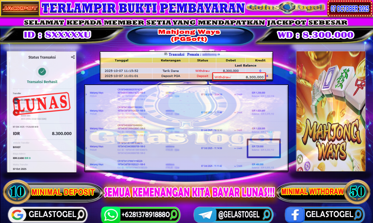 Berikut ini adalah Bukti Jackpot Togel Gelastogel 07 Ocktober 2025 yang sudah diproseskan langsung ke rekening member kami