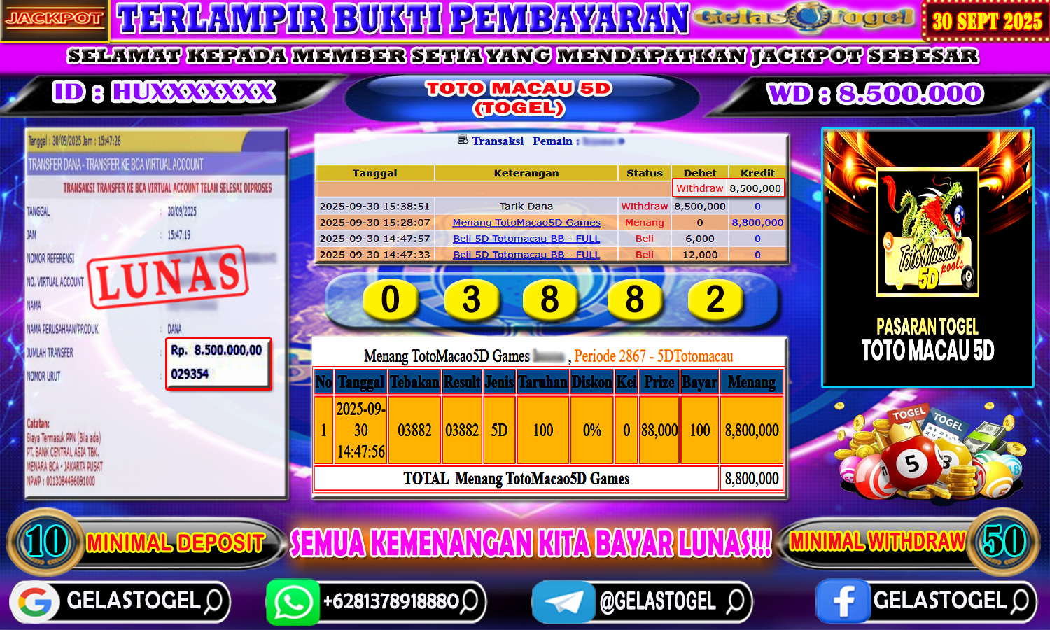Berikut ini adalah Bukti Jackpot Togel Gelastogel 30 September 2025 yang sudah diproseskan langsung ke rekening member kami